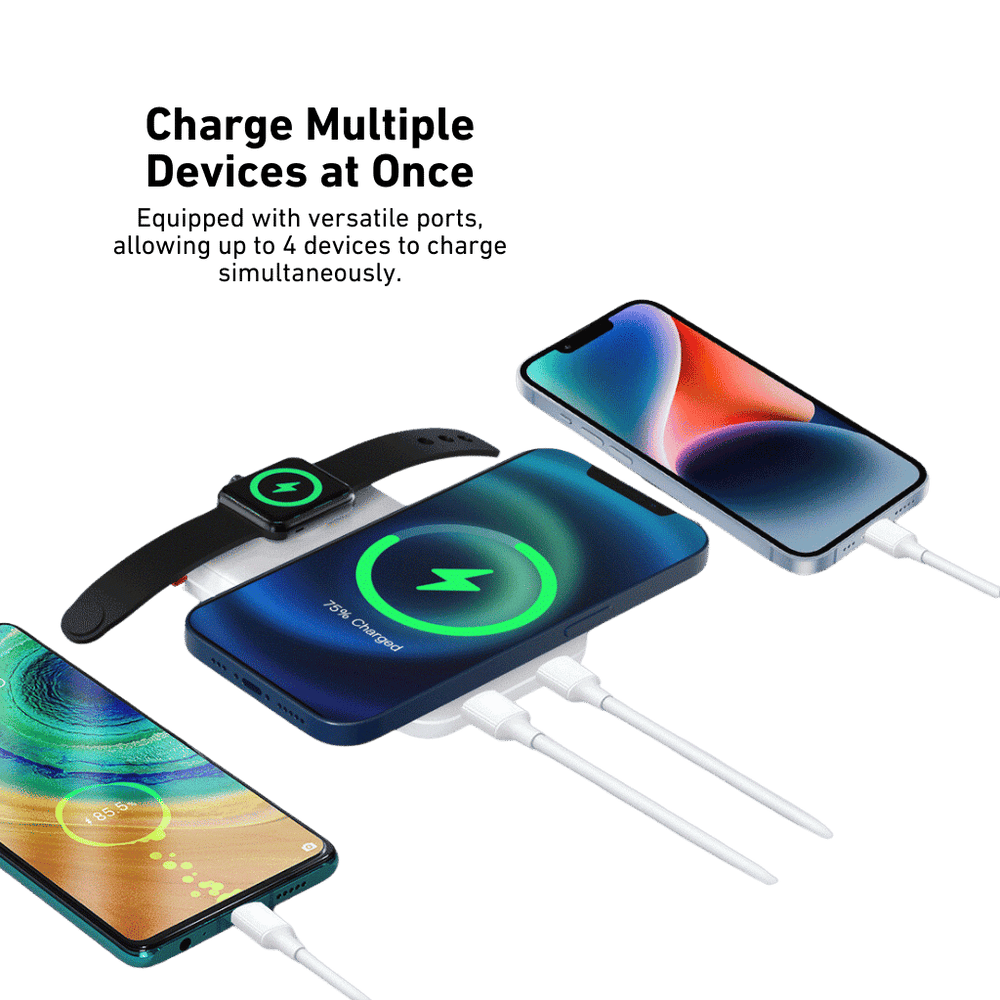 Laden Sie bis zu vier Geräte gleichzeitig über mehrere Schnittstellen mit starker Ausgangsleistung.