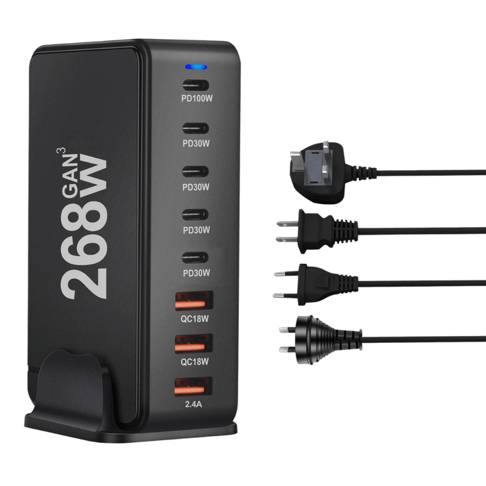 Gesamtleistung von 268 W – lädt Smartphones bis hin zu leistungsstarken Laptops schnell auf.