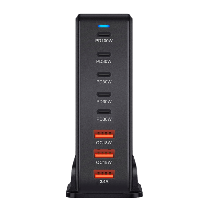 Lade mehrere Geräte gleichzeitig über fünf USB-C- und drei USB-A-Ports – jeder optimiert für maximale Effizienz. USB-C-Ports unterstützen PD-Schnellladen, USB-A-Ports verwenden QC-Protokolle für schnelles, zuverlässiges Laden.