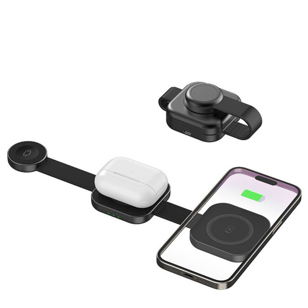 Es funktioniert mit MagSafe-kompatiblen iPhones (12 Serie und neuer), Apple Watch-Modellen – einschließlich Ultra – und AirPods mit kabellosem Laden wie AirPods Pro.