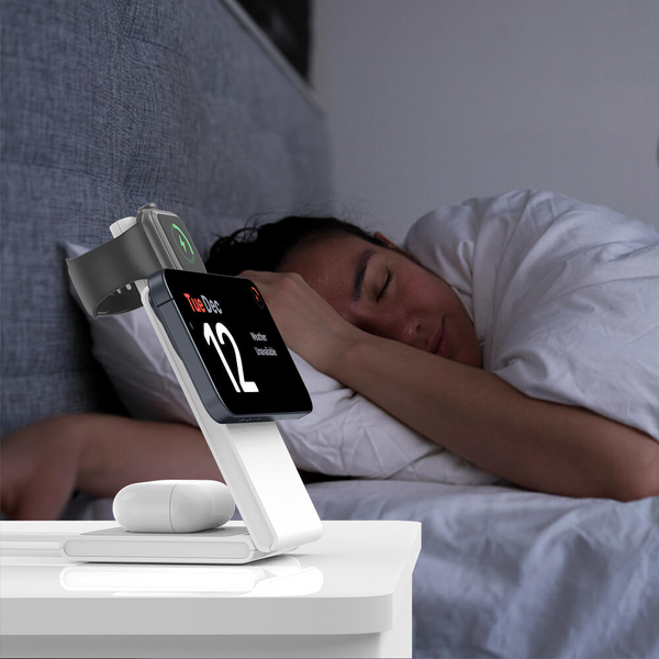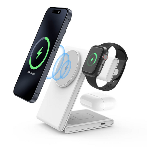 Lade iPhone, Apple Watch und AirPods gleichzeitig – mit einer eleganten, Qi2-zertifizierten Wireless-Ladestation.
