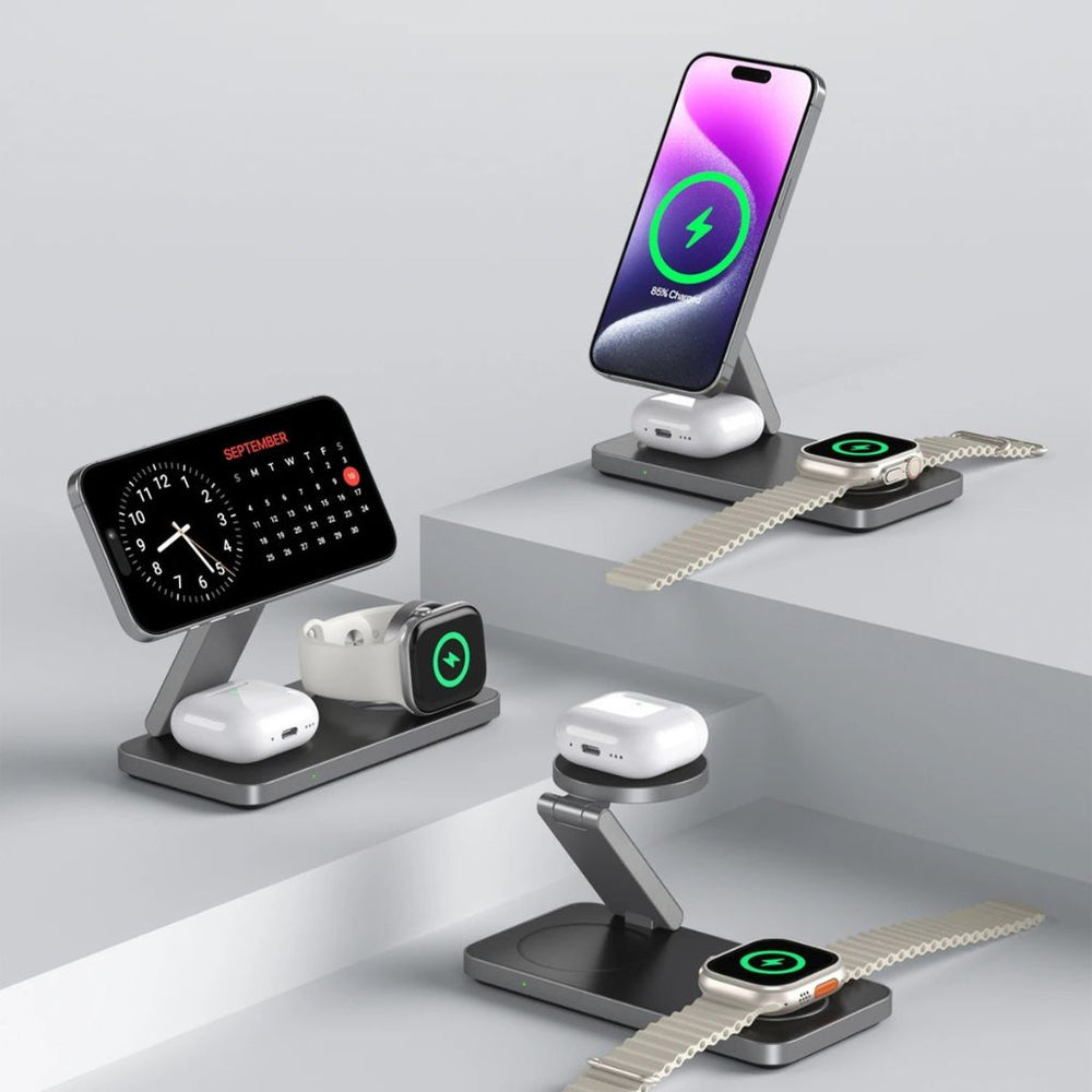 Laden Sie iPhone, Apple Watch und AirPods gleichzeitig — eine elegante Station ersetzt drei Ladegeräte.