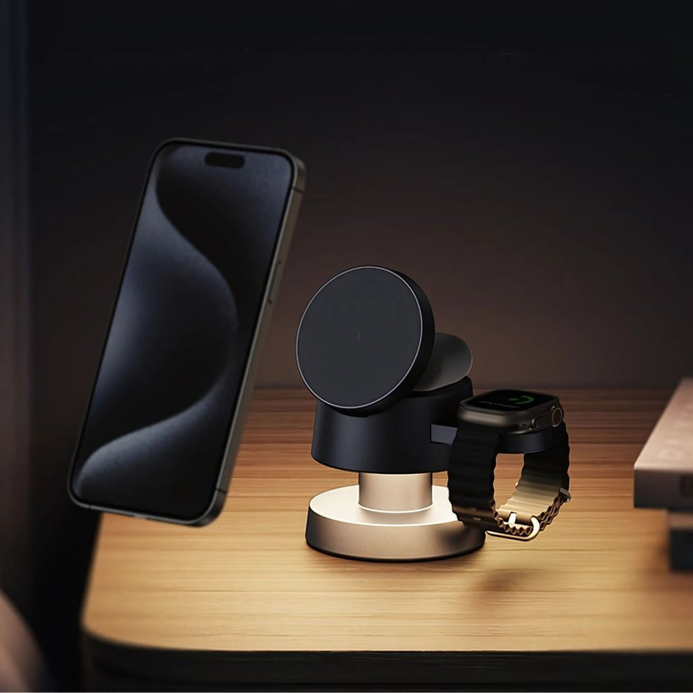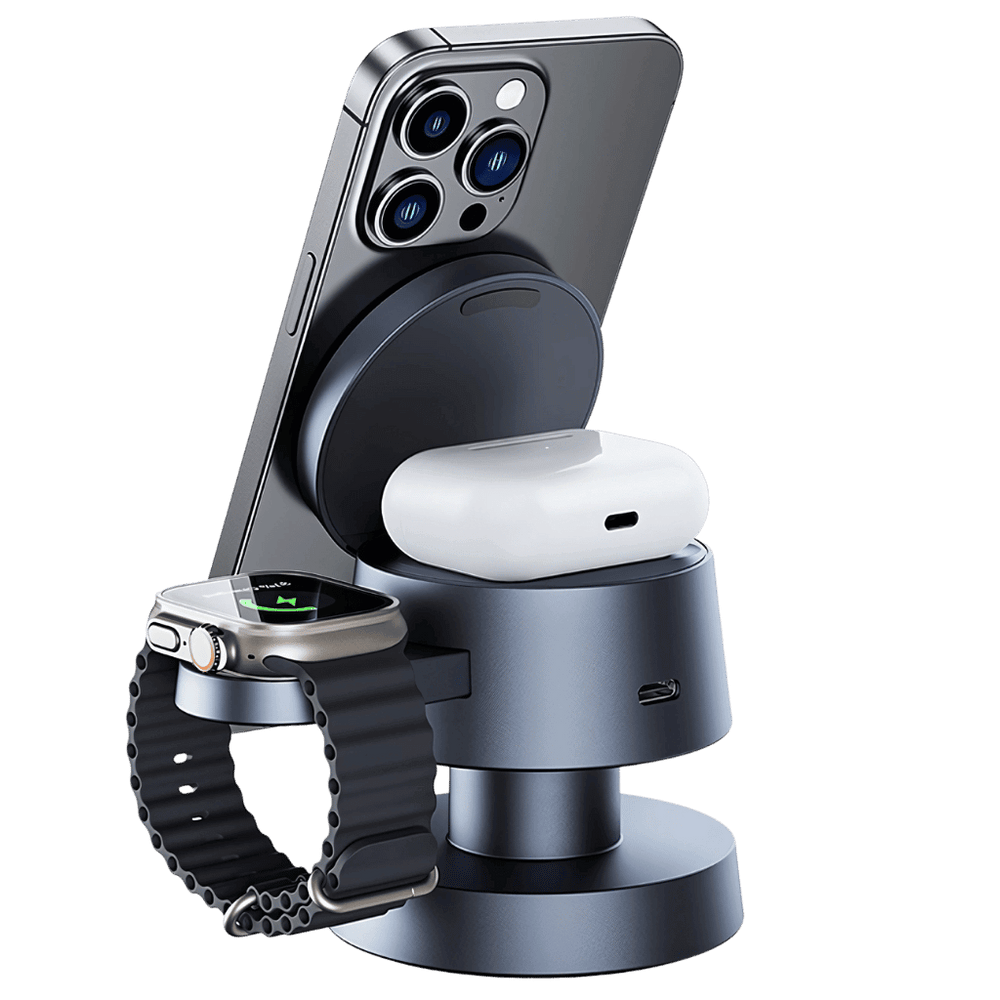 Versorgen Sie Ihr Smartphone, Ihre AirPods und Ihre Apple Watch gleichzeitig über eine elegante, praktische Ladestation.