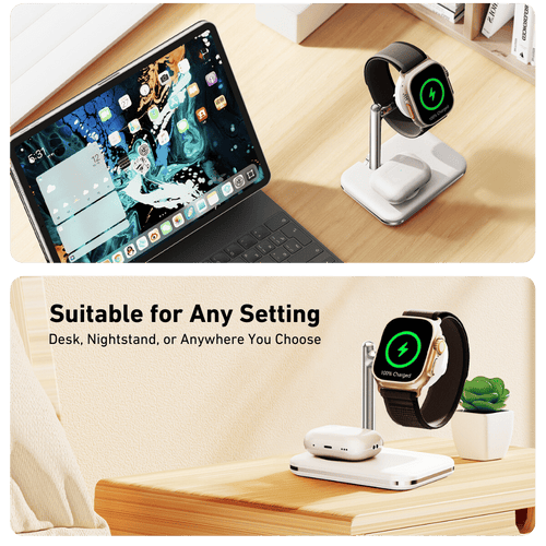 Laden Sie Ihre Apple Watch und AirPods gleichzeitig mit nur einer schlanken Lösung.