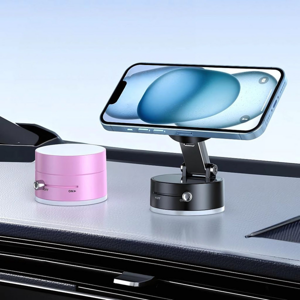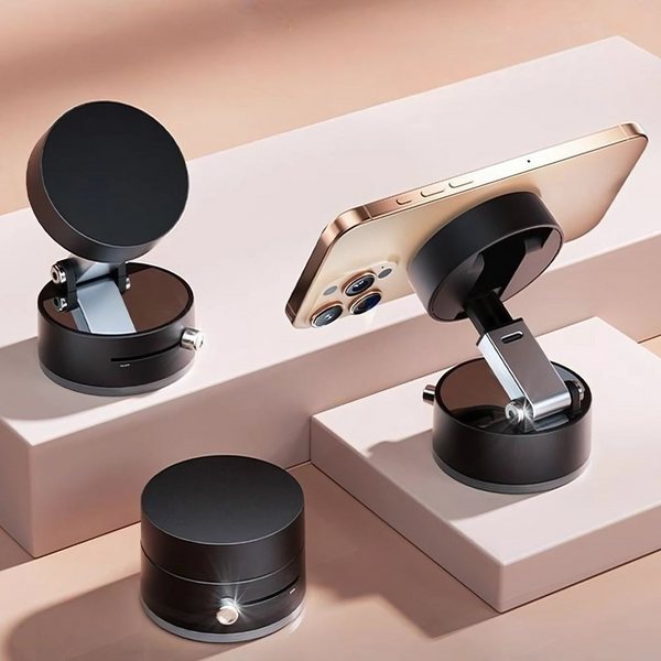 NOVAGEAR MagMount Grip kombiniert 20 starke N52-Magnete mit Vakuum-Saugnapf – für sicheren Halt auf Spiegeln, Tischen, Fliesen, Glas oder jeder glatten Oberfläche. Voll faltbar und 360° drehbar – ideal für Anrufe, Workouts, Navigation oder Content-Erstellung.