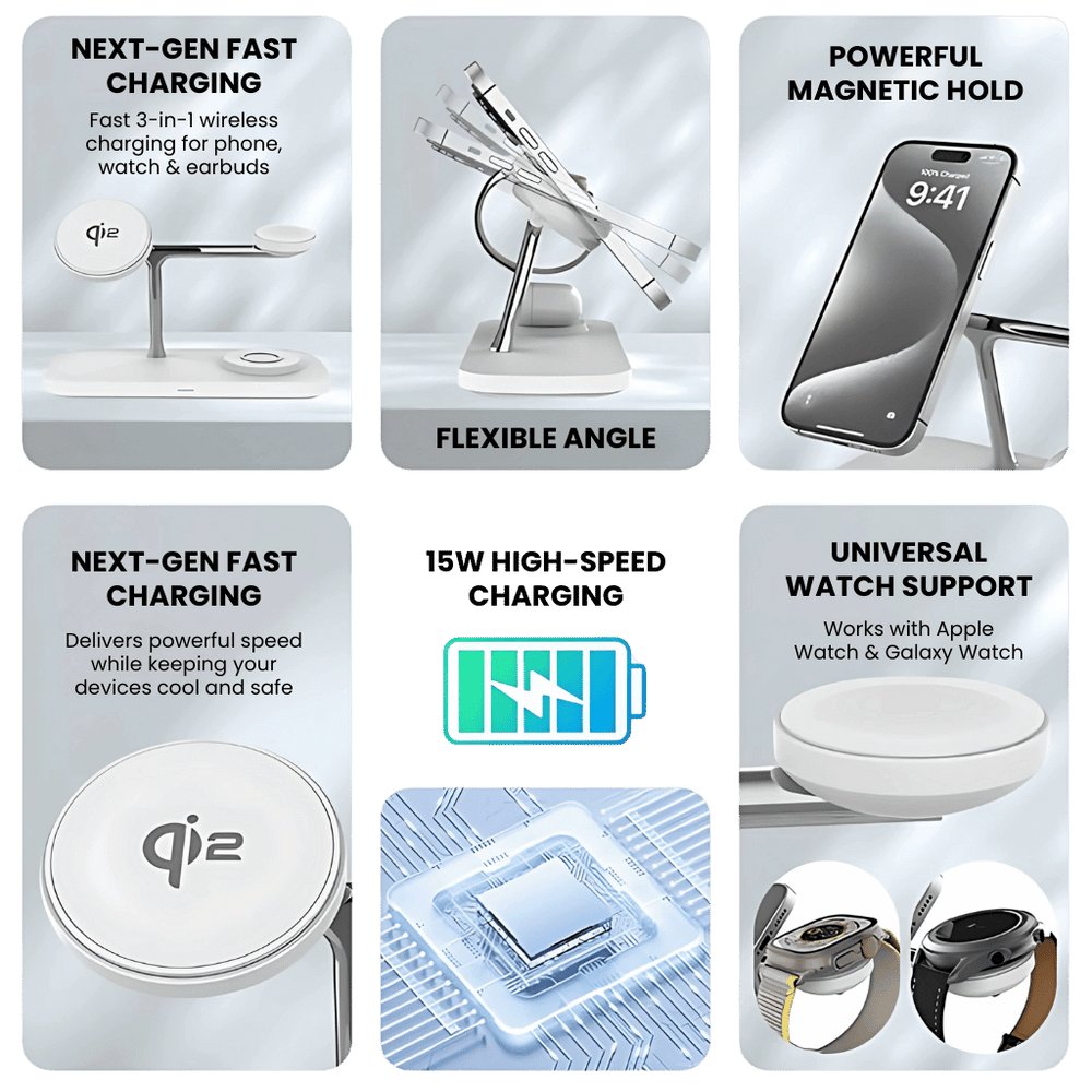 Bis zu 15W kabelloses Laden für das iPhone, während Ihre Uhr und Kopfhörer mit Strom versorgt werden.
